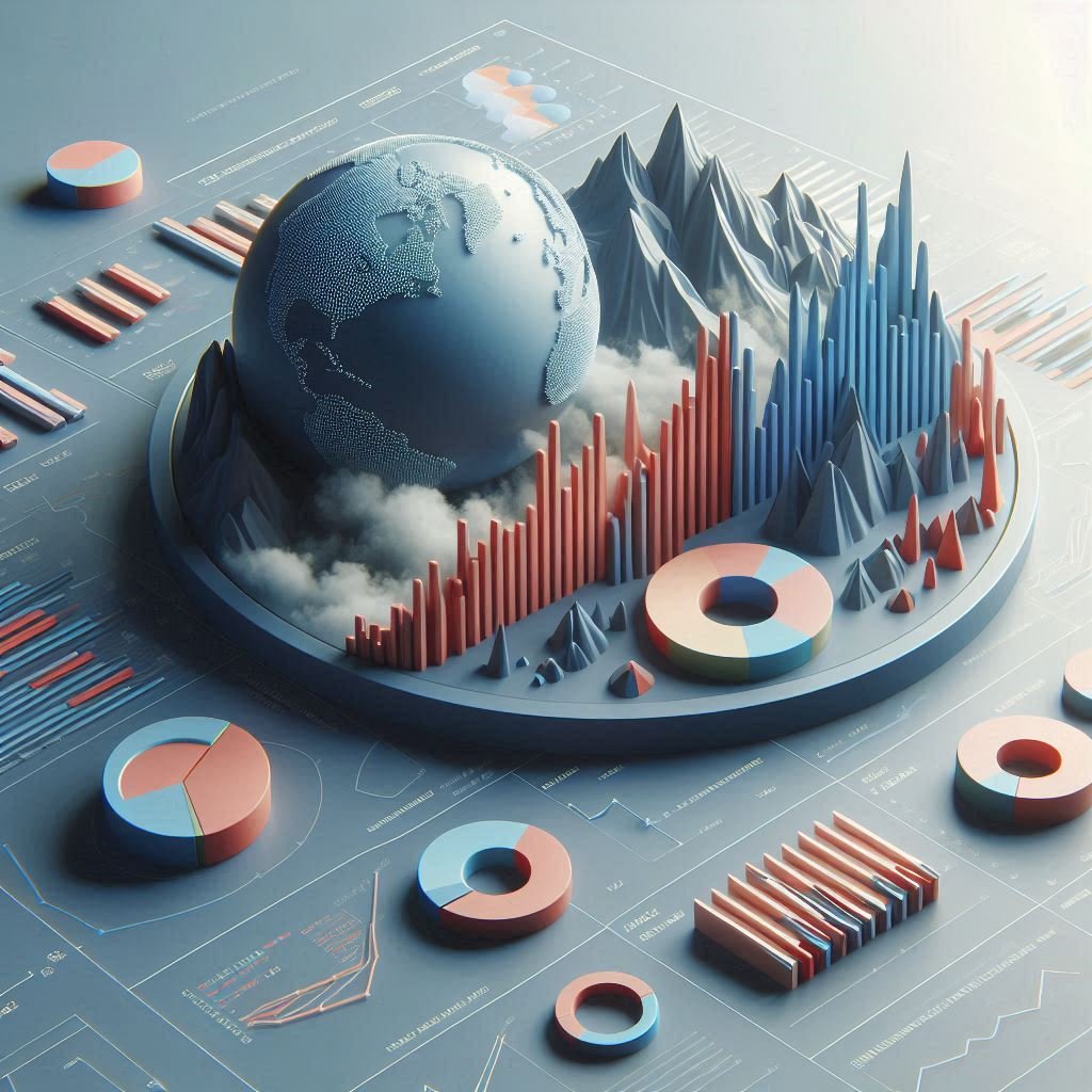 Mathematical visualization showing probability theory and statistics concepts with real-world applications, featuring charts, graphs, dice, and statistical formulas"